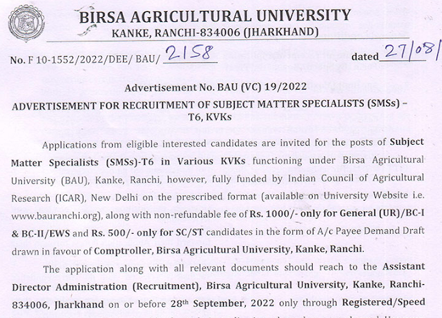 आवेदन करने की अंतिम तिथि : 15 सितंबर 2022